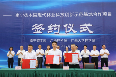 2022年7月20日,伟德体育与南宁树木园、广西林科院合作建设的南宁树木园现代林业科技创新示范基地的签约暨揭牌仪式在南宁树木园隆重举行。南宁树木园主任余注光、广西林科院经理陈崇征、伟德体育经理徐增富先后讲话并现场签约。