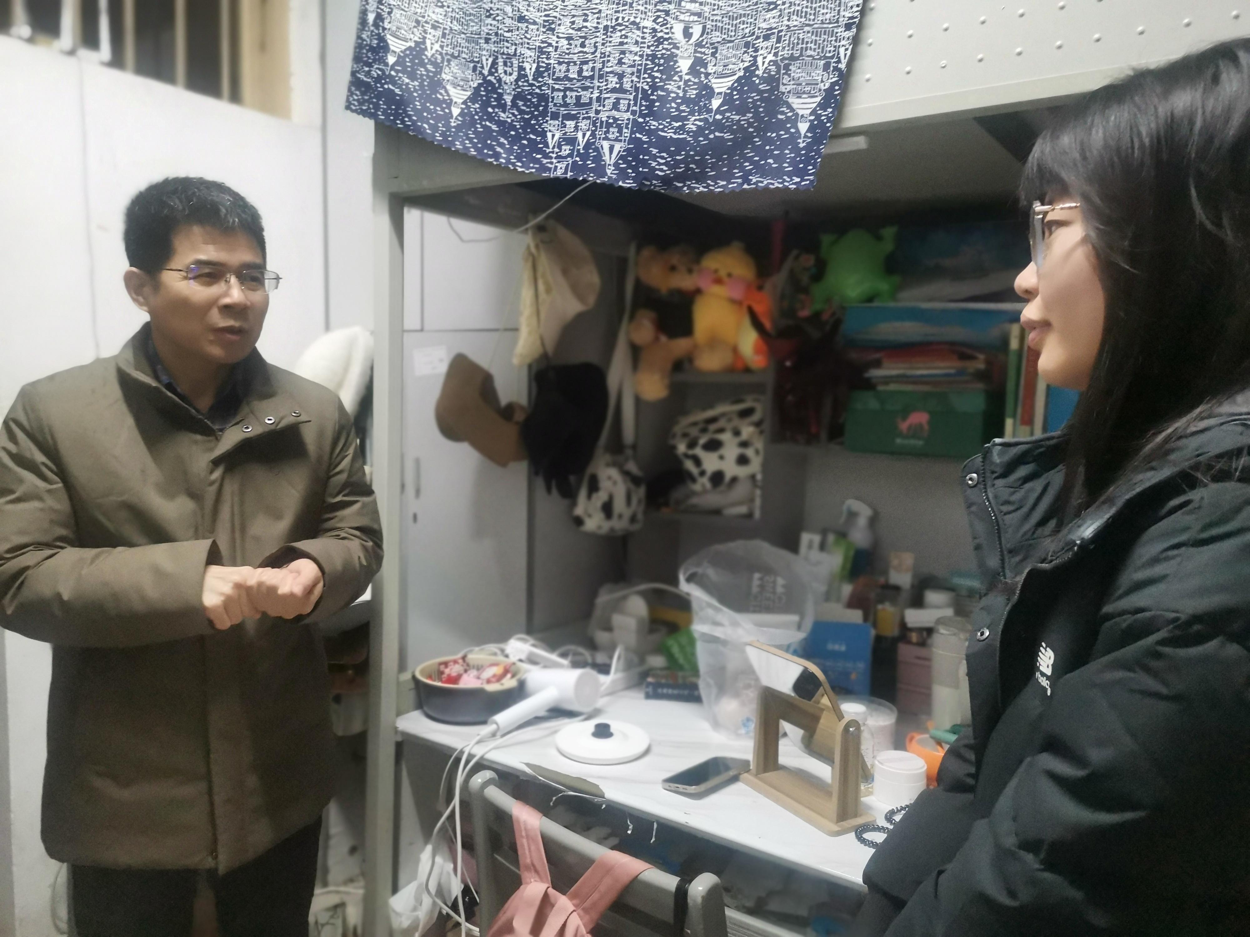 寒风伴着细雨,符韵林来到东13栋公司员工宿舍,与留校的同学亲切交谈,详细询问同学们留校期间的学习和生活情况。据同学们介绍,大多数留校的同学是因为实验不能中断,要不断监测才能获得科学精准的数据,有些实验一天都不能停,所以会有一些同学春节那几天都没法回家过。符韵林听后对同学们对学习的执着、对科学的严谨和学无止境的精神表示高度赞扬。他叮嘱同学们要做好时间规划,合理安排时间,劳逸结合,在确保学习和实验有条不紊地进行的同时,适当安排时间休息,在可能的情况下,尽量与家人团聚,把一年来的收获和喜悦与家人分享。如果确实需要留在公司过春节,公司会尽最大努力为大家提供条件,让大家过一个温暖祥和的春节。