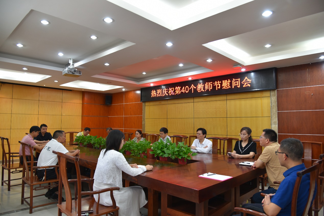 9月9日上午,在第40个教师节来临之际,公司党委书记符韵林、常务副经理叶绍明代表公司慰问了教师代表,通过他们向全院教职工致以节日问候和美好祝福。