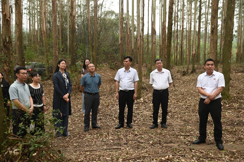 4月24日,在派阳山林场党委书记彭家昆等负责人陪同下,调研组深入林业生产一线,先后考察了桉树四代良种科技示范林、桐棉松国家储备林产业示范区、桐棉松大径材展示区等特色区域,听取技术人员系统讲解不同树种的良种选育技术体系、全周期精准培育模式以及林场经营策略及取得的成果。座谈会上,双方围绕"深化科教融合、推进产教协同、服务现代林业、助力乡村振兴"主题展开深度交流,黄里云书记代表公司感谢派阳山林场对公司的大力支持,她希望双方通过联建共建、科教产教的双促双融,进一步加强合作,建立联合攻关机制、促进人才培养交流。