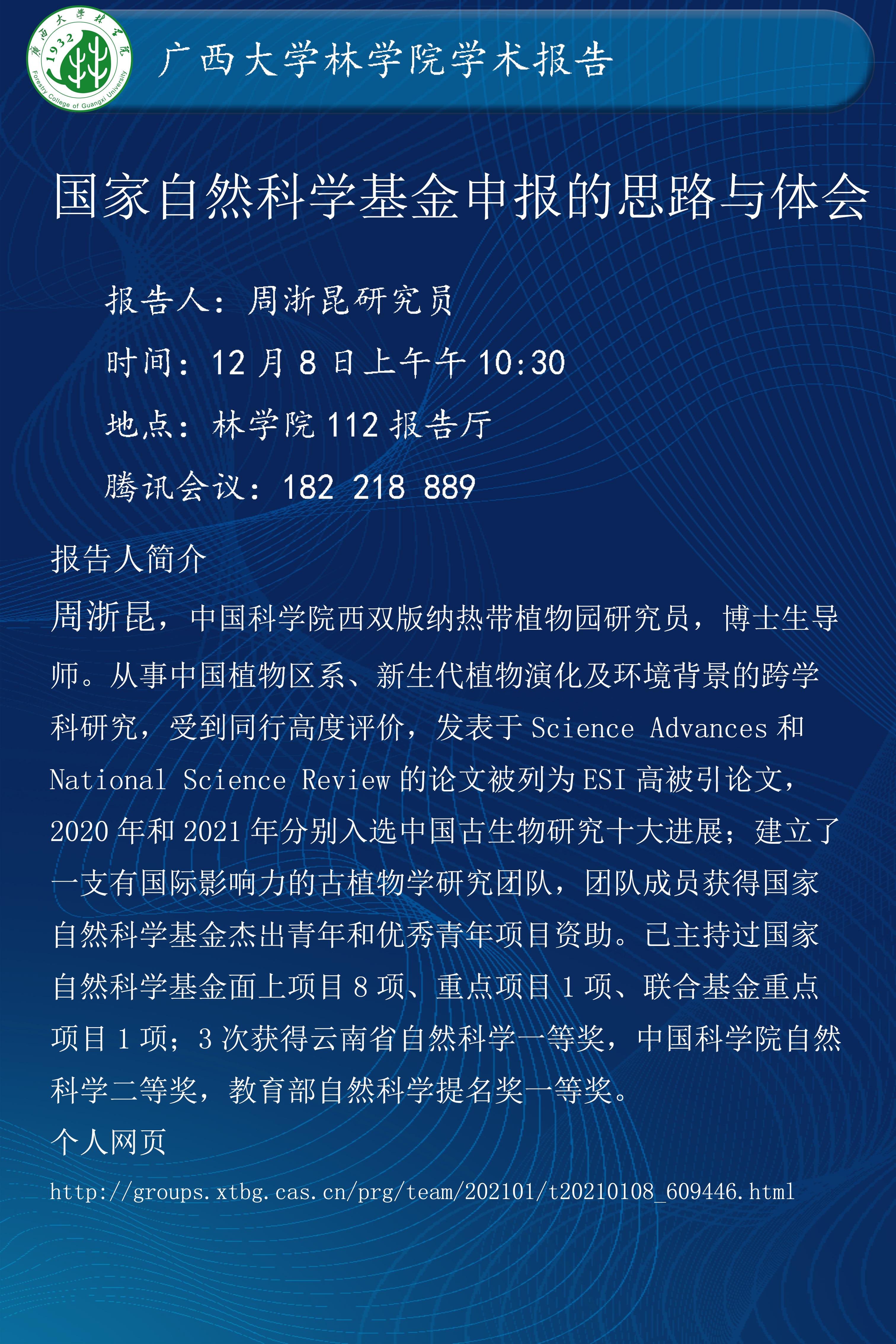 学术报告:国家自然科学基金申报的思路与体会