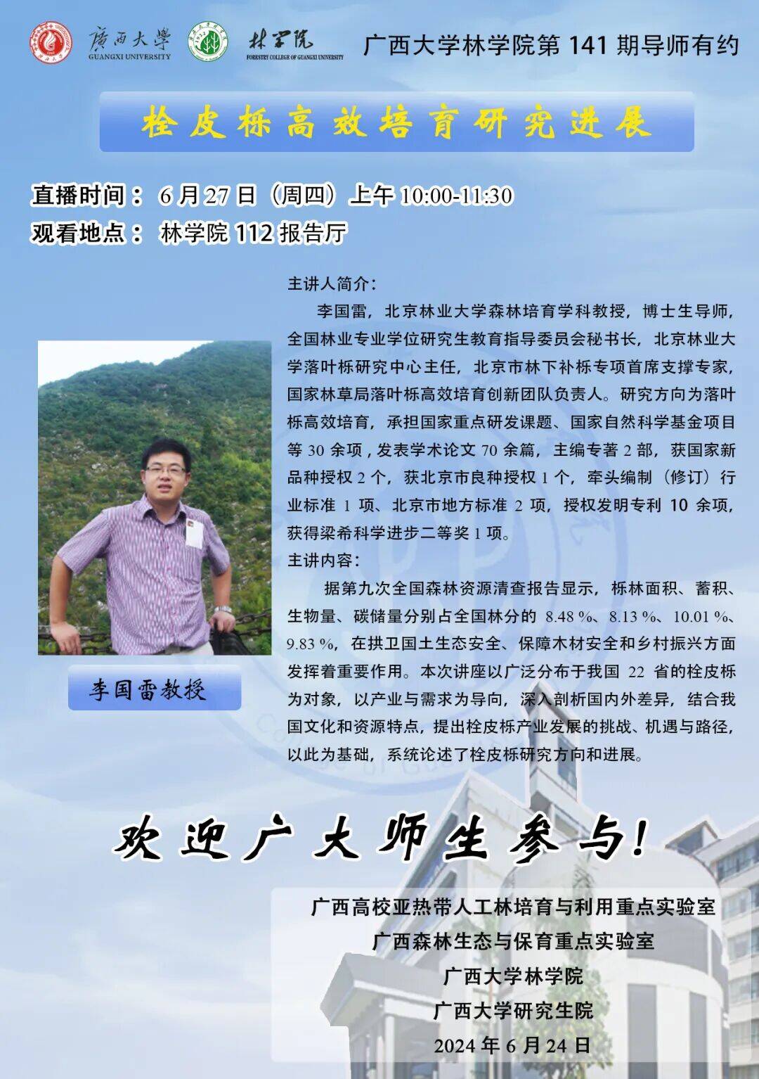 导师有约学术报告:栓皮栎高效培育研究进展