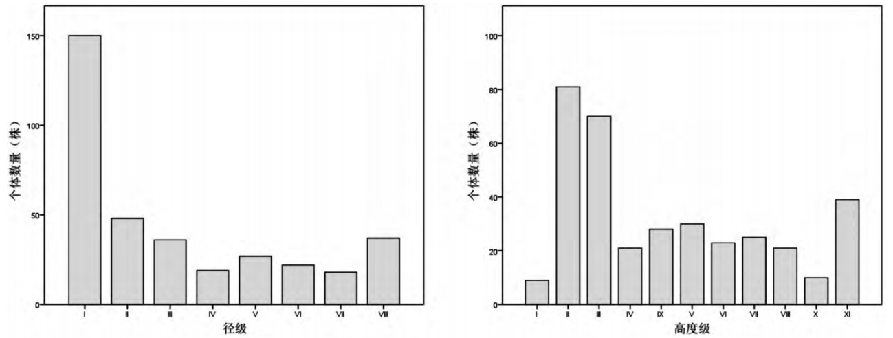 图3样地幼苗、幼树的数量结构和更新苗的数量结构