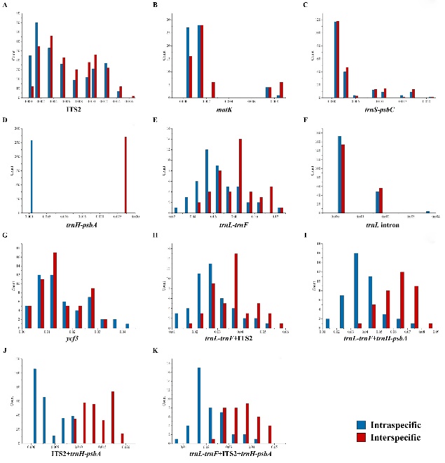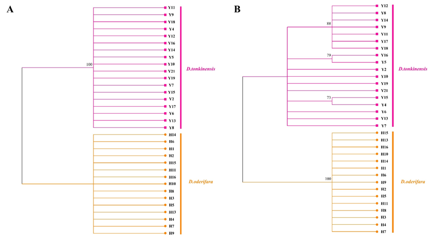 本研究通过DNA条形码探索降香黄檀与东京黄檀两个树种识别,选择10条单一序列及4条组合序列进行分析,通过基于遗传距离的分析方法、基于BLAST搜索、基于序列特征的分析方法及系统进化关系重建的方法评估各序列的鉴别效果。