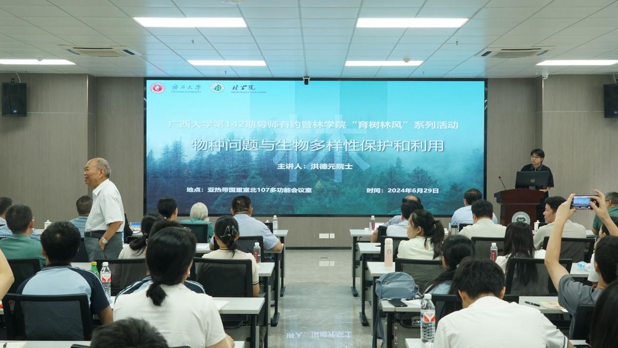 6月29日上午,公司成功举办第142期导师有约暨“育树林风”系列活动,伟德体育院士、第三世界科公司院士、世界著名的植物学家洪德元应邀以《物种问题与生物多样性保护和利用》为题,在亚热带重点实验室107会议室为公司师生作学术报告。公司副董事长于文进主持报告会,自治区林业局局长蔡中平和二级巡视员蒋迎红出席报告会,Bevictor伟德师生、自治区林业局、驻邕的研究机构及南宁市重点中学等单位代表共计160余人参加报告会。
