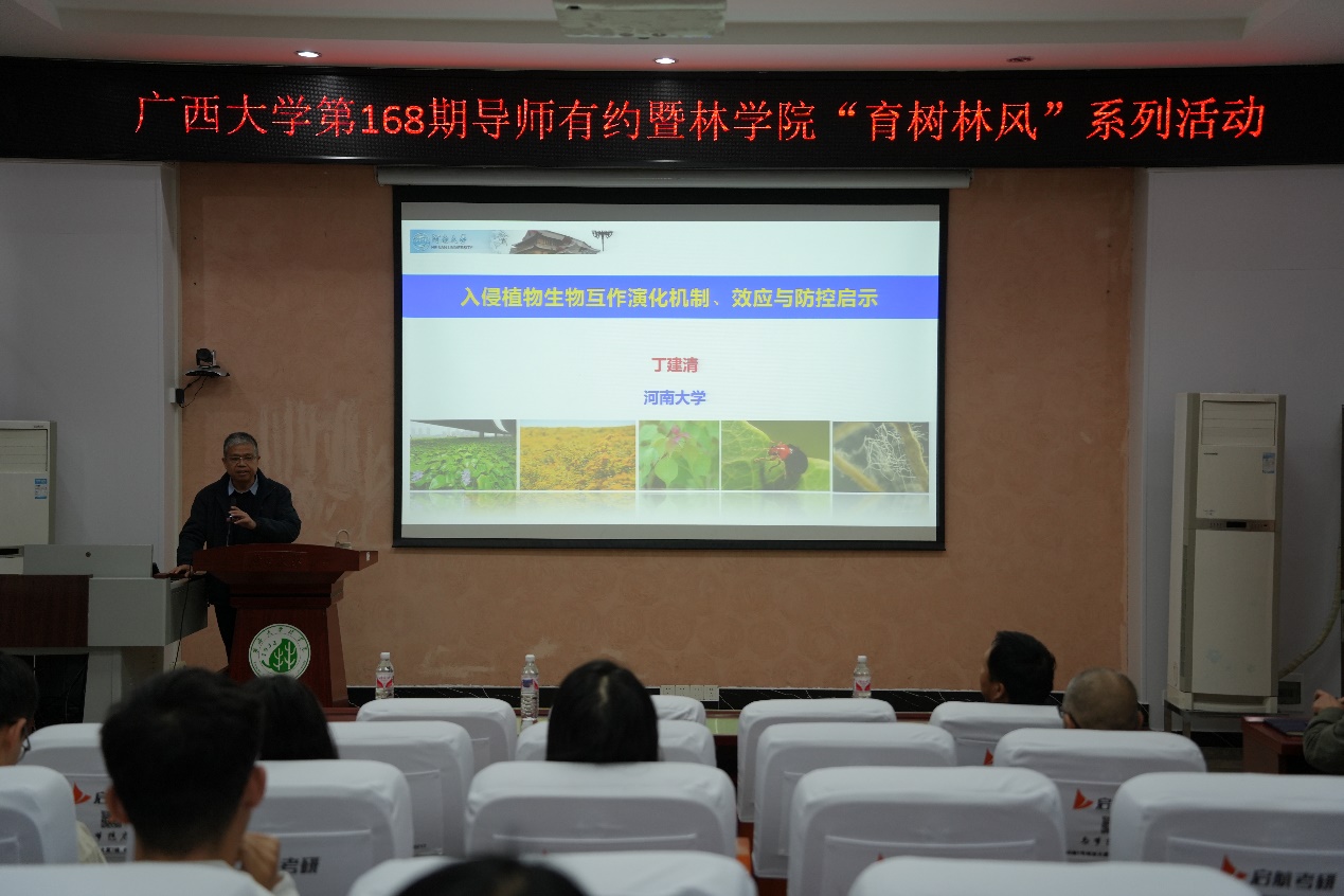 12月19日上午,Bevictor伟德第168期导师有约暨伟德体育“育树林风”学术文化系列活动在公司112举行。本次活动邀请河南大学特聘教授、生态学学科带头人丁建清教授为师生作“入侵植物生物互作演化机制、效应与防控启示”学术讲座,吸引了公司80余名师生参加,公司副经理招礼军教授主持会议。