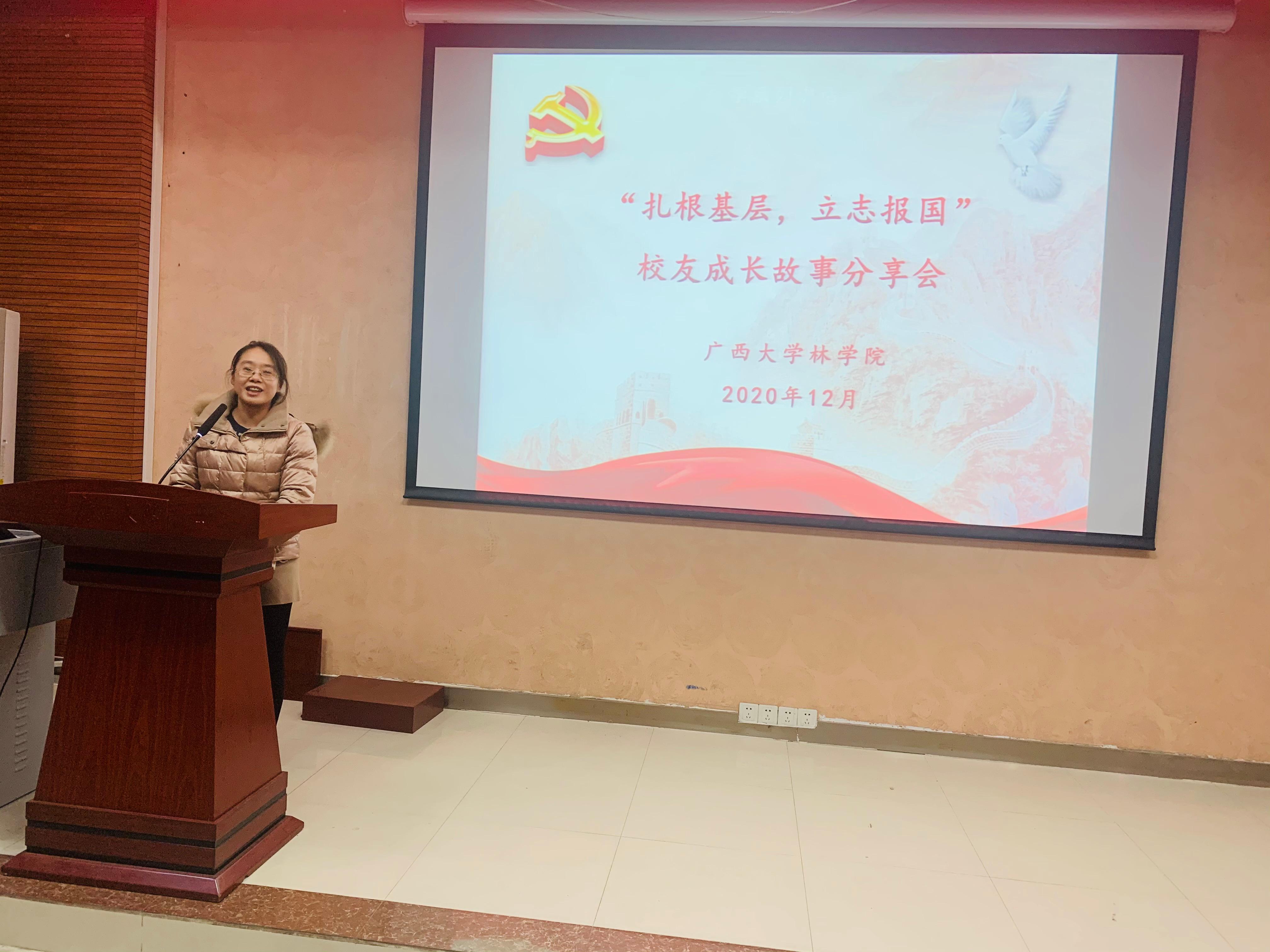 为鼓励林苑学子扎根基层,勇担强林兴林使命,12月26日伟德体育在公司112教室举办了“扎根基层,立志报国”主题员工成长故事分享会。公司黄超群、周江悦、谭诗蓓、申庆海和黄瑞琛五位扎根基层优秀青年员工作为嘉宾分享成长故事。公司党委副书记徐丽、院团委书记银宁、院团委副书记马奕、院辅导员李琼莹、孙静以及员工代表100余人参加分享会。