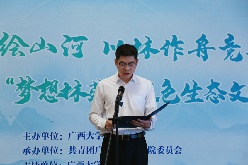 公司党委书记黄里云在欢迎辞中先是对相关职能部门对公司工作的大力支持表示感谢,随后指出,公司始终坚守“替山河妆成锦绣,把国土绘成丹青” 的初心使命,以国家生态文明建设需求为导向,构建 “党建红・生态绿”育人体系,将生态文明教育嵌入专业课程、实践教学、科研攻关全链条。本次绿色生态文化节精心设计九大板块,构建起沉浸式育人场景,不仅是彰显了林业人“生态尖兵”的使命担当,也是为建设壮美广西和美丽校园提供了人才支撑和创新动能。